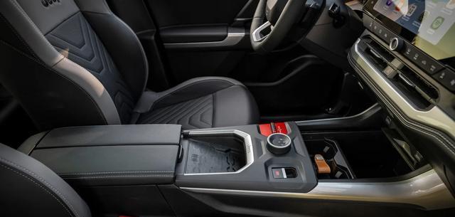 在内饰部分,悬浮式液晶屏尺寸不小,但又窄又长,可视面积其实不算出色,配合液晶仪表盘和Hud组成的标准三件套,旋钮换挡作为集团的灵魂不会缺席,方向盘则有着独特的近似多边形的三幅构造,层次感丰富的中控面板加入了多种材质进行覆盖,彰显豪华感,粗壮的拉手等元素又提升了硬派的属性,储物格又大又多,显得非常的便捷。简单的物理按键也提升了操控的体验。当然后排空间方面就不要有任何期待,反正也不打算在国内推出,主销欧美市场对于这方面都没有太大的需求,还有助于节约成本。